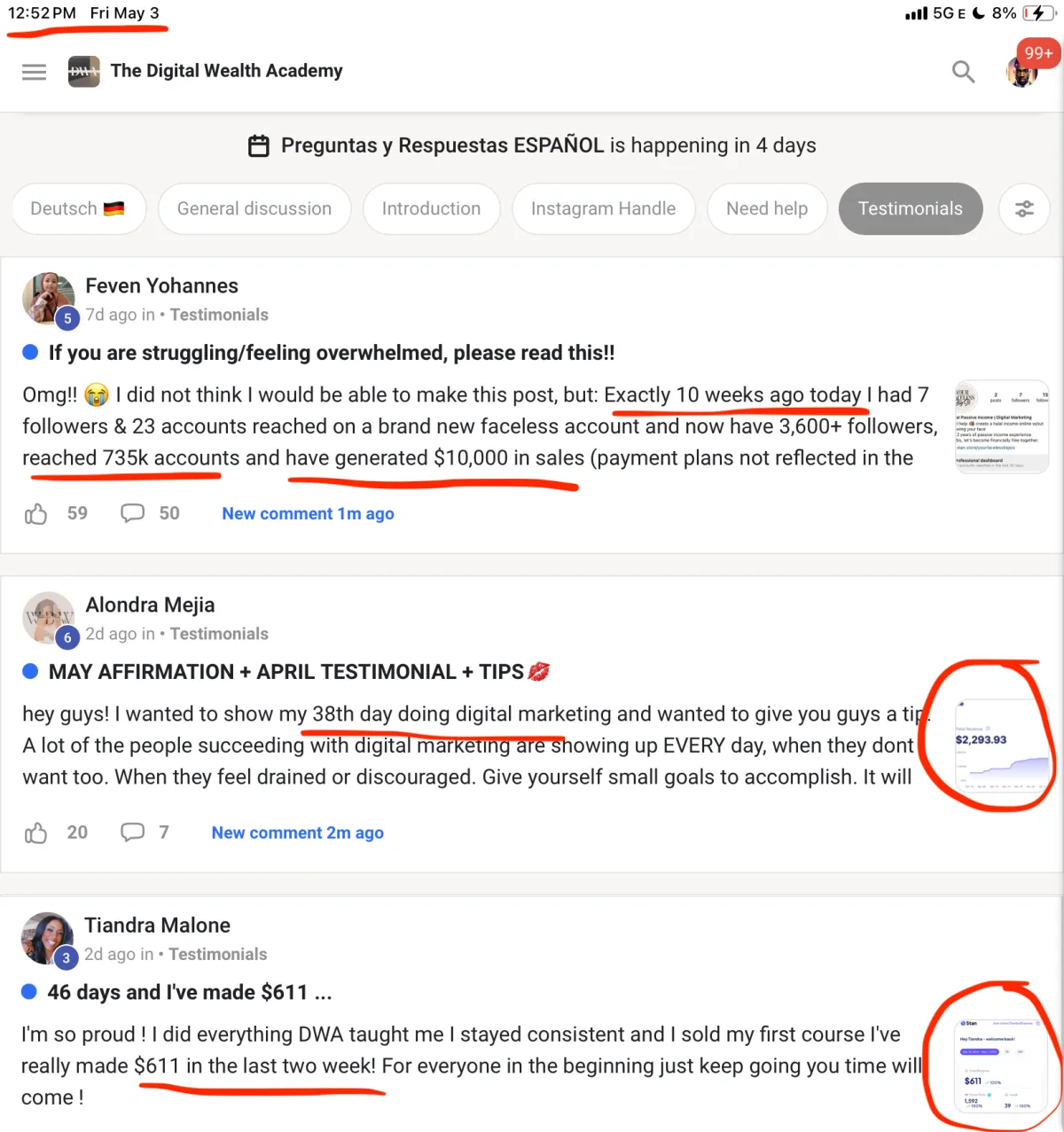 Below, I'll share some results from the DIGITAL WEALTH ACADEMY community.